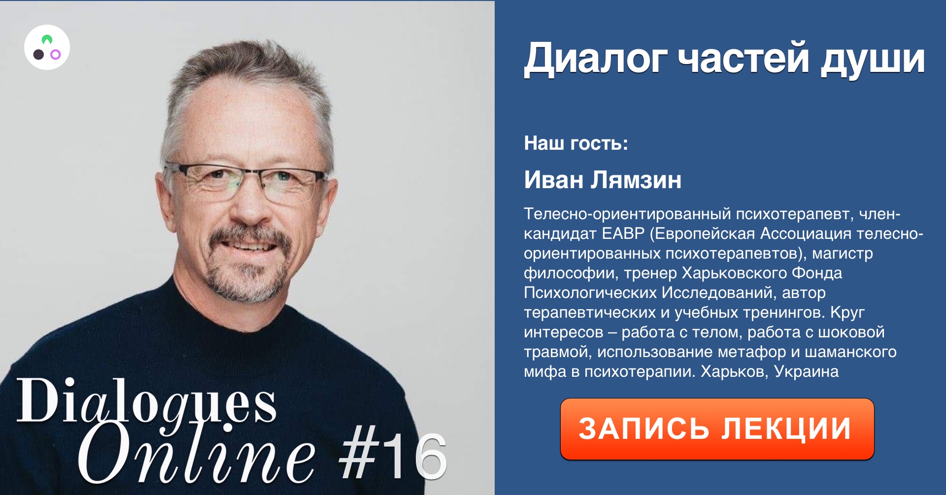 Ivan Lyamzin – Body-oriented psychotherapist, candidate member of EABP (European Association of Body-oriented Psychotherapists), Master of Philosophy, trainer of the Kharkiv Foundation for Psychological Research, author of therapeutic and educational trainings. Her interests include working with the body, working with shock trauma, using metaphors and shamanic myth in psychotherapy. Experience since 1996, private psychotherapy practice and conducting trainings. Kharkov, Ukraine.